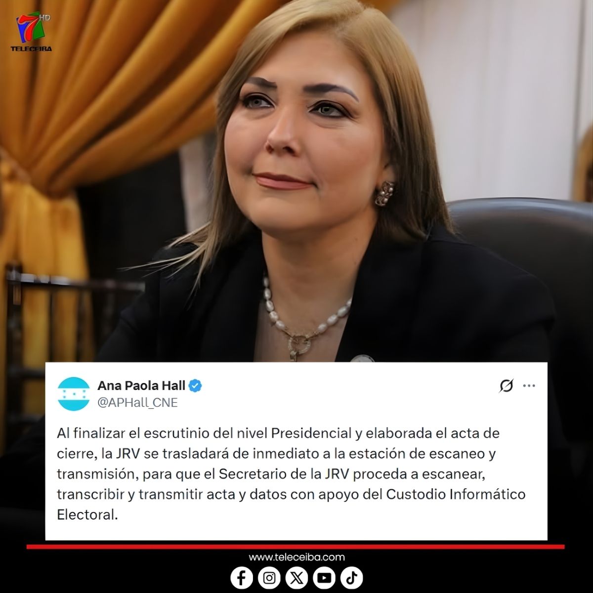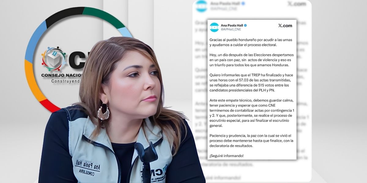 La consejera del CNE, Ana Paola Hall, informó de un "empate técnico" en el conteo preliminar presidencial